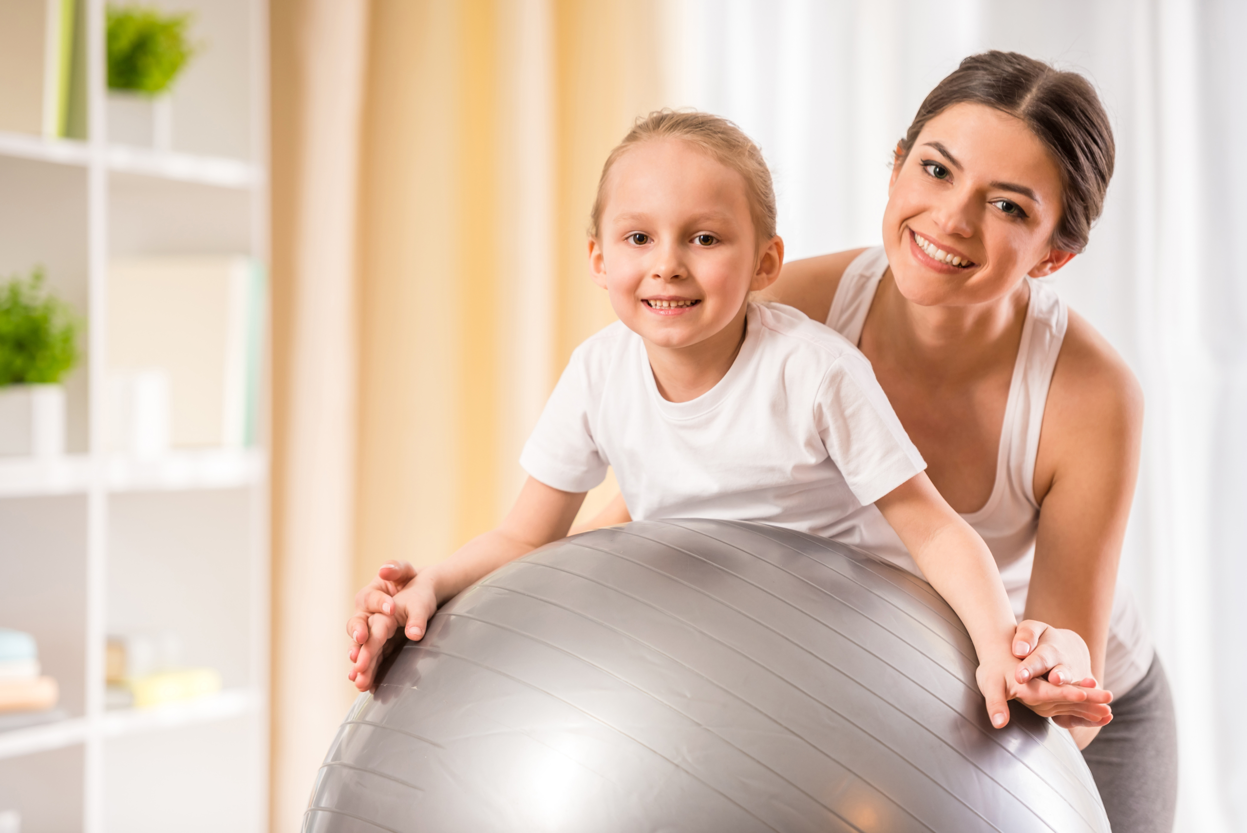 - Slow Rocking on an exercise ball – this activity uses the vestibular system (the little system of tubes and fluid in your ears that helps with balance, sensing the body in space, and understanding movement of the body through space). Lie on an exercise ball with the belly downward. The hands will touch the ground with every forward movement. Make sure the rocking is SLOW, if the rocking is too quick, it may have the opposite effect!